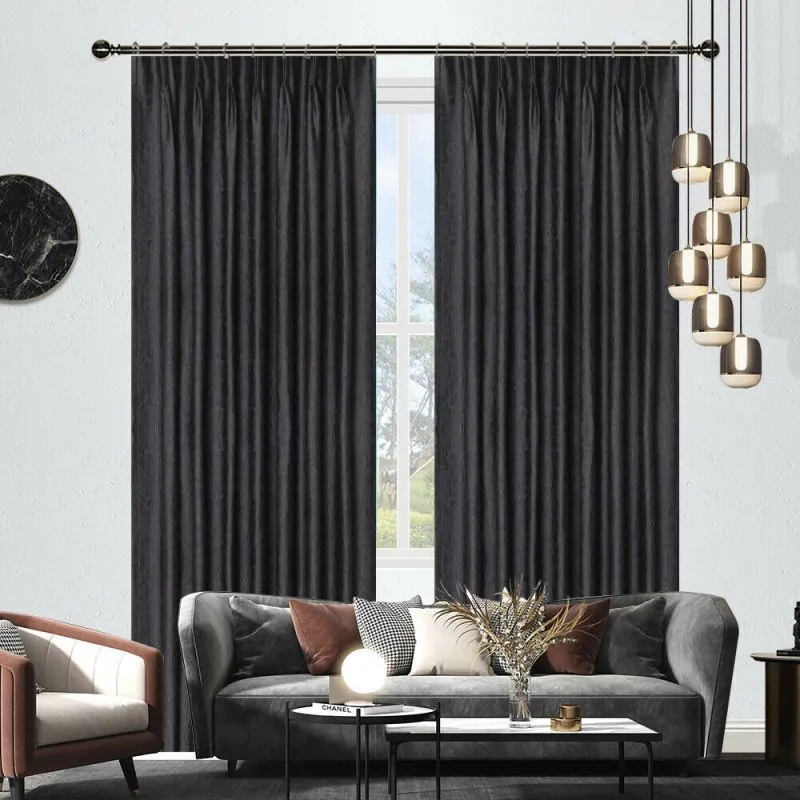 Perfect for modern Dubai homes, the Aqua Blackout Pinch Pleat Curtains combine style and functionality, creating a luxurious and comfortable ambiance in any bedroom or living space.