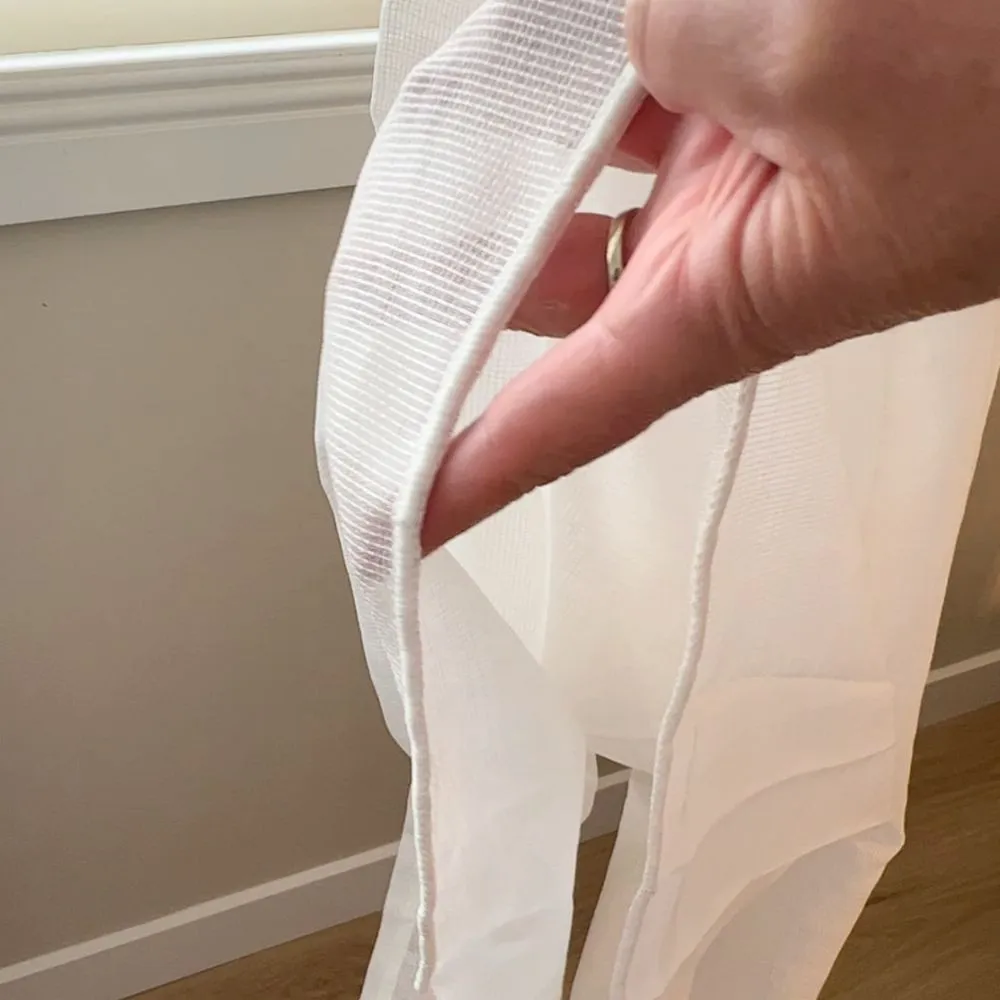 BRISTOL Pinch Pleat Sheer Curtains WHITE bring a luxurious 5-star hotel style to your home. Made from premium 100% polyester sheer fabric with a weighted lead hem, they drape beautifully and softly filter light while maintaining privacy. Ideal for bedrooms, living rooms, or layered with blockout curtains for a modern, elegant look.