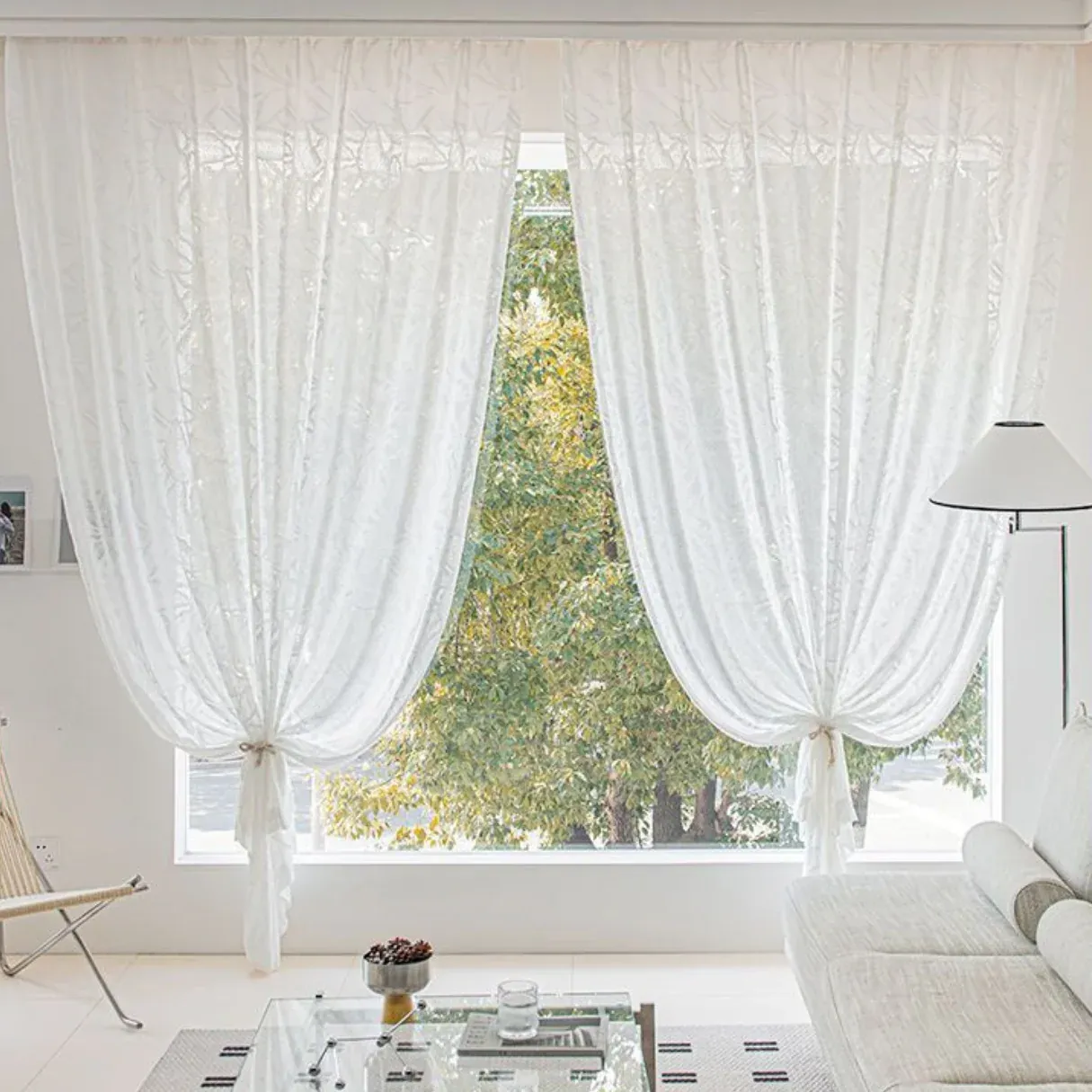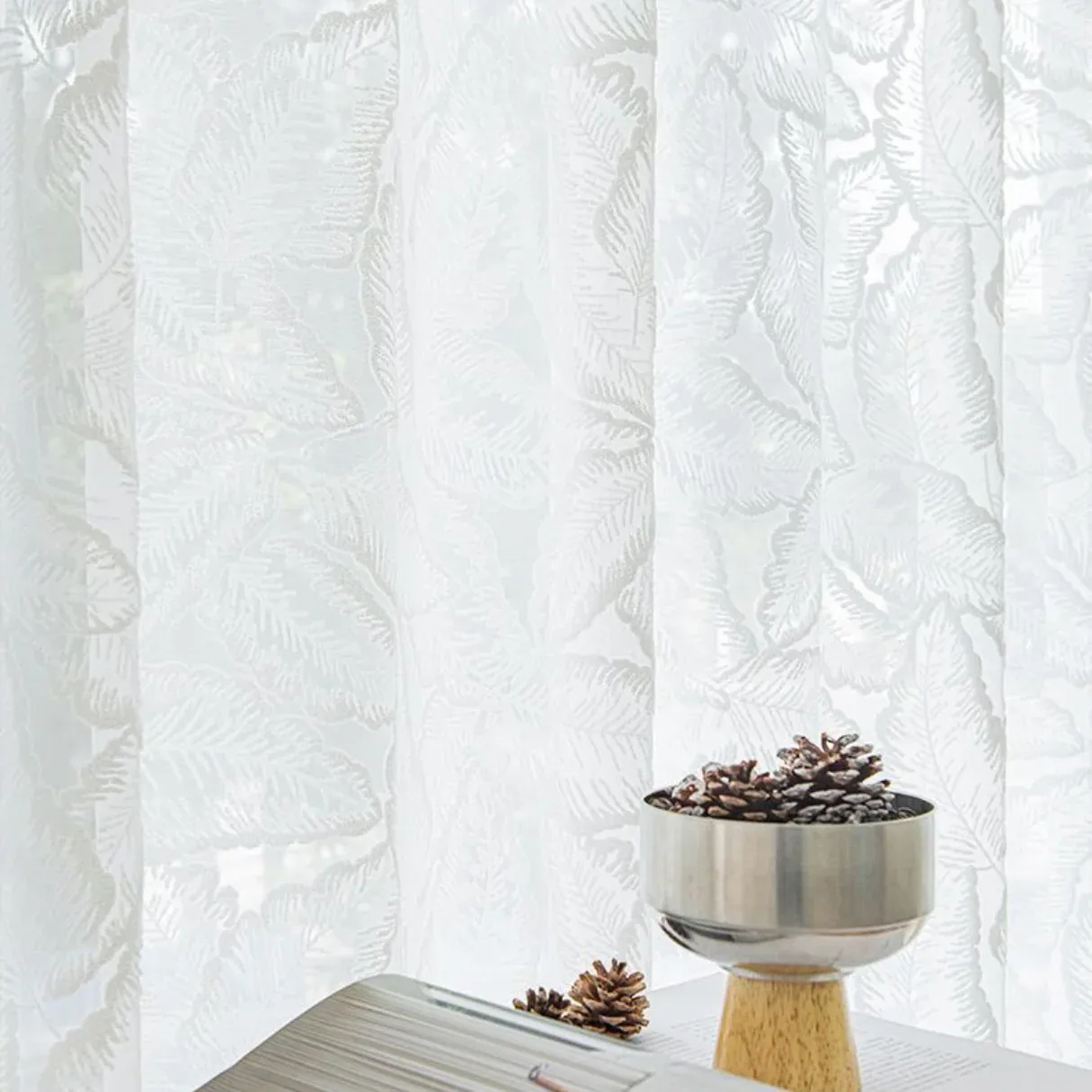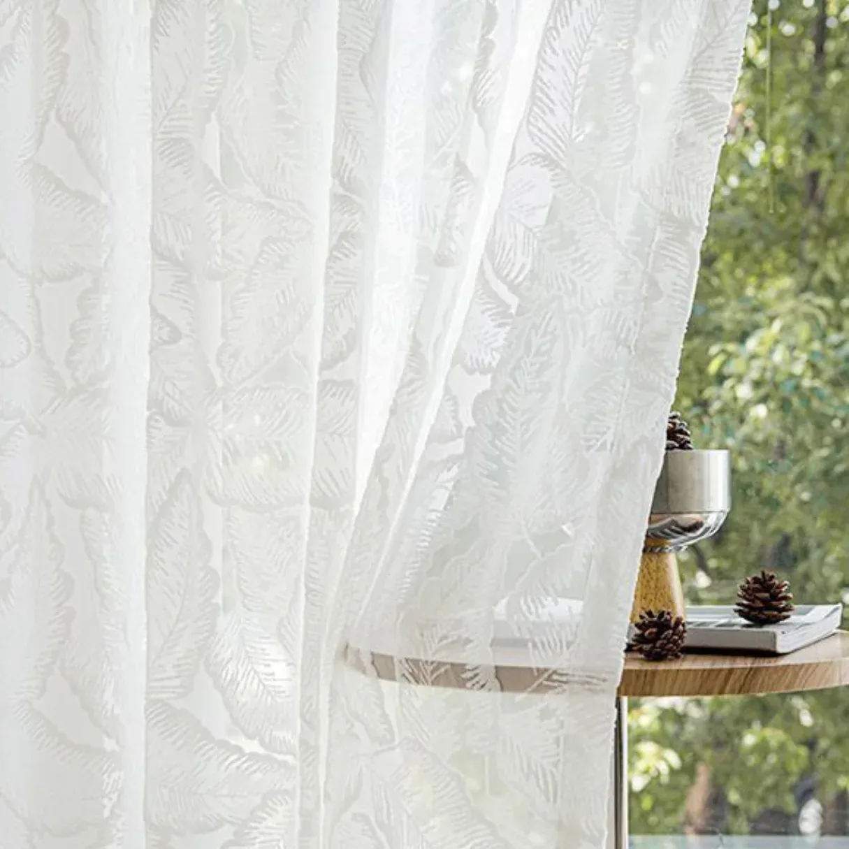 Add a touch of tropical elegance to your home with OPULENT PALM WHISPER Sheer Curtains. Crafted with a jacquard palm leaf pattern and a soft 3D cotton-like texture, these curtains gently diffuse light while creating a cozy, refined atmosphere.