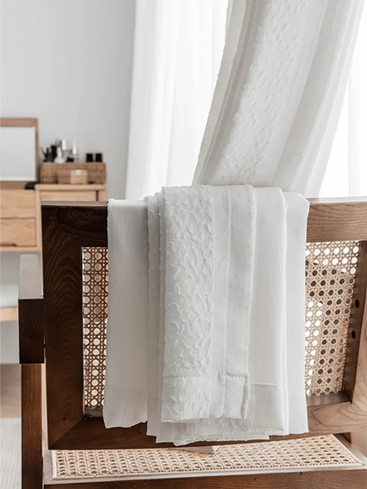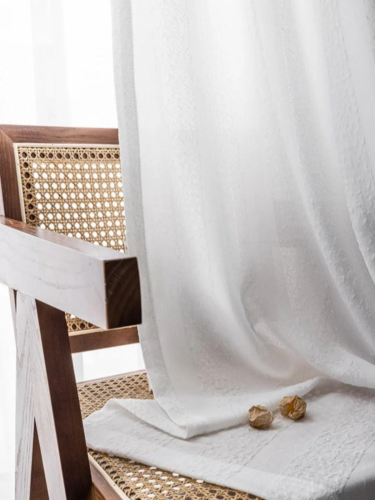 Enhance your home with TRANSLUCENT BUBBLESTRIP UV-SHIELD ELEGANCE Sheer Curtains. Made from premium polyester sheer fabric, these curtains feature a modern bubble strip design that adds subtle sophistication and style to any room.